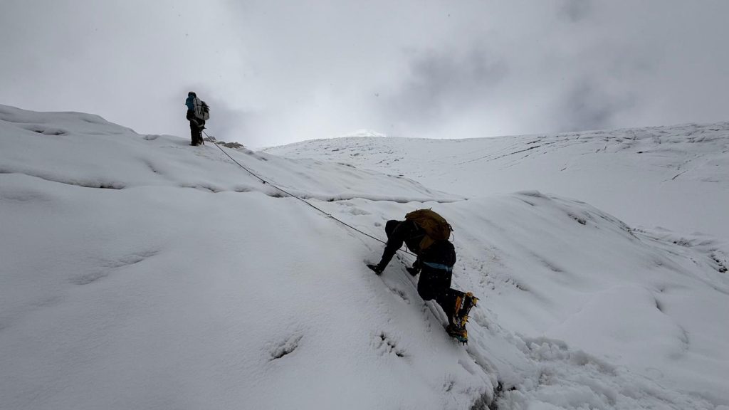 Au-delà du Camp IV, les alpinistes entrent dans la redoutable “zone de la mort”, où débute l’ascension finale vers le sommet, une phase particulièrement éprouvante réalisée dans des conditions extrêmes.